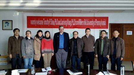 会议在外国语学院资料室举行。外国语学院院长周平与Timothy主任就外国语学院本科生及研究生的联合培养、学分互认,以及外国语学院老师赴宾夕法尼亚米勒斯维尔大学做访问学者之事进行了洽谈,并初步达成了合作意向。