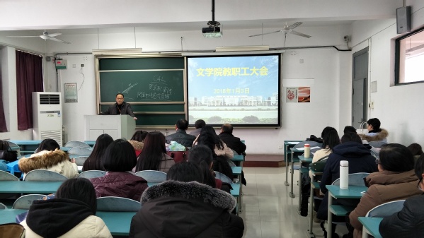 1月3日下午,文学院在东校慎思楼303教室召开全体教职工大会,学院党政领导和全体教职工参加了会议,会议由院党委副书记刘晓光主持。