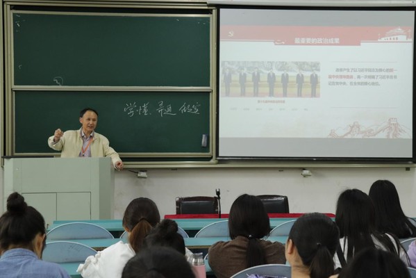 袁世俊在开班仪式上以“新时代中国特色社会主义的行动纲领”为题,解读了十九大精神新的政治成果、理论创新成果、新的奋斗目标。 同时结合十九大报告中对高等教育的具体要求,从学校层面出发,为学校、学院的未来发展制定了宏伟蓝图。他指出,贯彻十九大精神关键是在“学懂、弄通、做实”上下功夫,要充分理解十九大主题的深刻内涵,并且呼吁同学们做新时代有责任、有担当的向上青年。