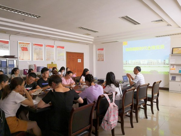 7月2日下午,文学院党委书记袁世俊在院党员活动室为学生第一、第二党支部上了一堂题为“如何做新时代合格党员”的党课。