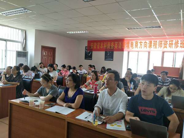 7月24日至28日,由中国对外贸易经济合作企业协会全国外经贸从业人员考试中心、安徽省外文学会商务英语教学工作委员会主办,1701vip黄金城最新登录承办的2018年安徽省本科商务英语跨境电商方向课程师资研修班在1701vip黄金城最新登录成功举办。本次研修班有来自全省13所本科、中高职院校的商务英语专业的40名教师代表参加培训。
