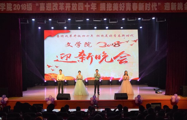 10月26日晚,文学院在艺术楼报告厅举办2018级“喜迎改革开放40年,拥抱美好青春新时代”迎新晚会。文学院党委书记袁世俊、副院长李雪红、党委副书记刘晓光以及18级新生辅导员出席本次晚会,2017级和2018级全体同学观看本次晚会。