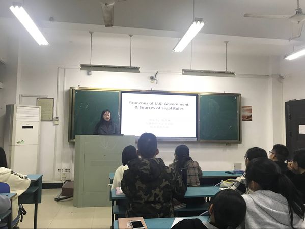 1115日晚7点半至8点半我院美国访学归来的教师唐晋湘副教授在我校明德楼410教室对商务英语一年级同学做了一场关于美国社会与文化的讲座。唐晋湘老师详细介绍了美国政治体系的构成和法律法规的多种来源,其中还兼具了美国历史的简介。语言精确,内容丰富,与学生互动频繁,激发了同学们的求知欲,拓展了商英专业同学们的视野。整个讲座过程中教室座无虚席,同学们聚精会神听取唐老师的讲解,积极参与,气氛热烈,效果良好。