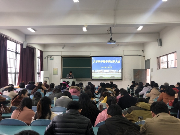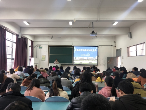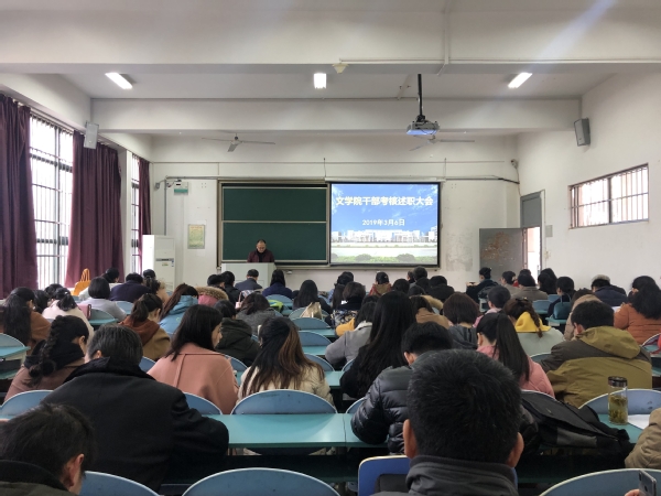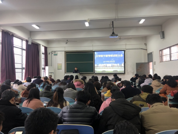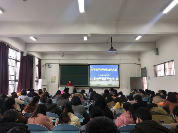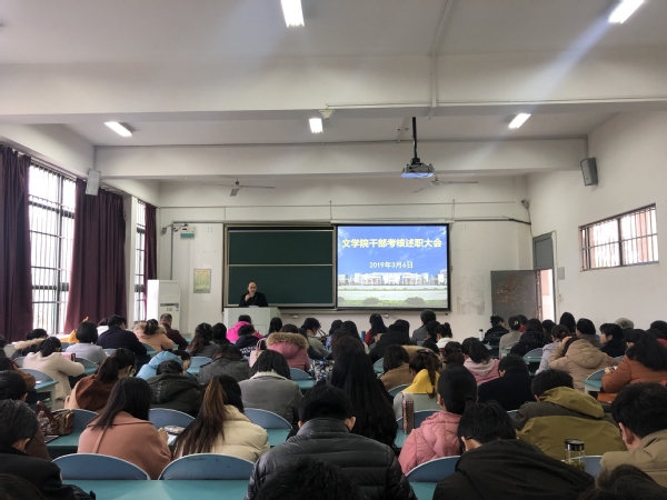 3月6日下午,文学院在慎思楼103召开2018年度领导班子述职述德述廉暨民主测评会。学院党政领导及全体教职工参加了此次大会。会议由院党委书记袁世俊主持。