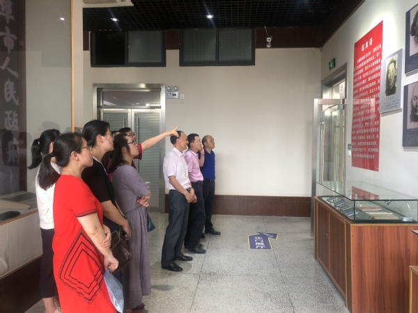 为深入学习贯彻习近平新时代中国特色社会主义思想和党的十九大精神,扎实开展“不忘初心、牢记使命”主题教育,7月3日下午,文学院组织党员干部赴蚌埠市革命历史陈列馆开展党史教育日活动。院党委书记袁世俊,院长方军,副院长李雪红,党委副书记刘晓光,党委委员吴勇,学院各党支部书记及科级党员干部参加了活动。