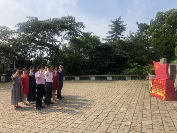 在革命烈士纪念碑前,全体党员干部低头默哀,悼念革命烈士英魂,面对鲜红的党旗,高举右手,庄严宣誓,重温入党誓词。在革命烈士纪念馆,大家怀着崇敬的心情瞻仰了为民族解放、国家富强抛头颅洒热血的革命先烈,通过一幅幅历史照片、一件件珍贵实物、一行行解说文字,深入了解了革命烈士的英雄事迹。