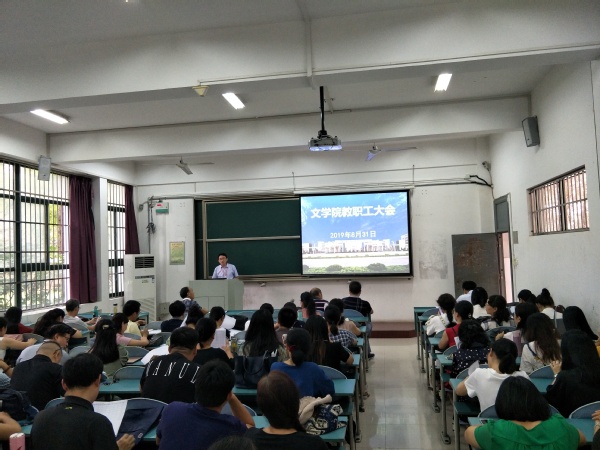 8月30日下午,文学院于慎思楼103教室召开新学期全体教工大会,院长方军,副院长吴利琴、李雪红,院党委副书记刘晓光,副院长朱松林出席大会,学院全体教职工参加了此次会议,会议由院党委书记袁世俊主持。