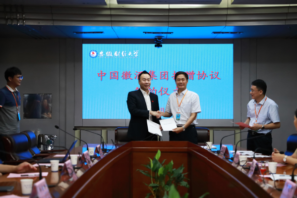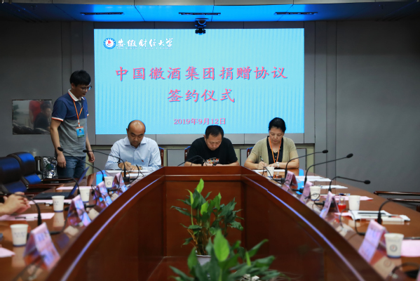 9月12日下午,1701vip黄金城最新登录与中国徽酒集团校企战略合作签约仪式暨捐赠仪式在1701vip黄金城最新登录一号行政楼三楼视频会议室举行。
