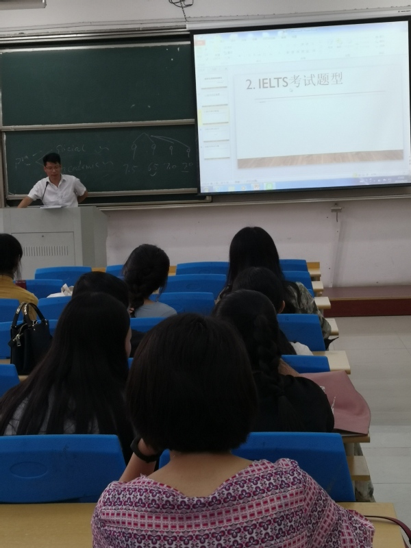 9月25日下午,文学院刘晓明老师在明德楼115做了题为“国际化英语测试研究-IELTS考试题型与教学对策”的专题讲座。此次讲座由曹少森主持,我院部分教师参加了讲座。