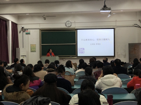 李雪红结合工作实际,以“何为立德树人”的问题出发,阐述了“立德树人”的寓意和重要意义。她指出,立德树人能使人的实践活动向真、向善、向美;能使人的需求走向高层次精神需要。她强调,立德树人的关键是教师,高校教师必须要进一步明确 “立何德”“树何人”这一问题,将思想政治教育同与专业教育有机融合,提升课程建设水平,提高人才培养质量,做新时代“四有”教师。