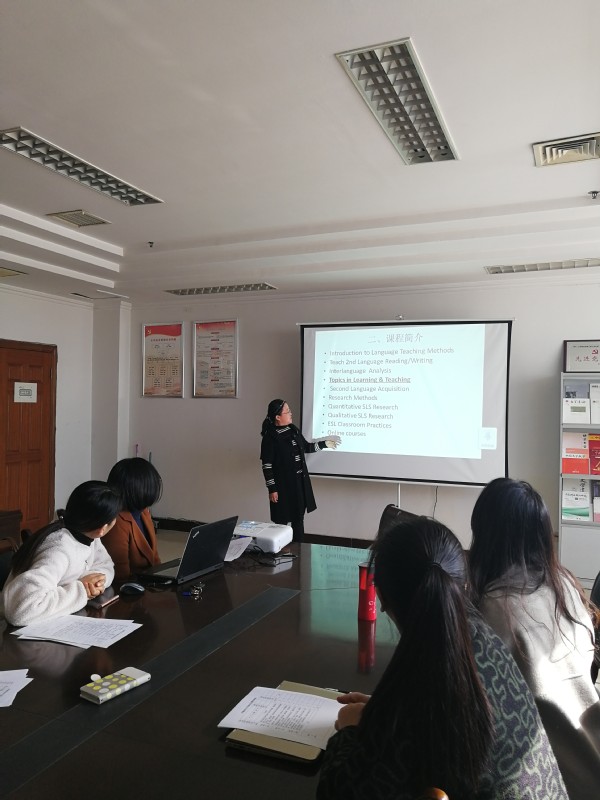 冯娟老师以在美所修的“TOPICS IN LEARNING AND TEACHING”这门课程为例,介绍了MSU的相关课程安排与课堂设计特点,并结合自己的教学与在会老师探讨了国内外二语课堂教学的异同。