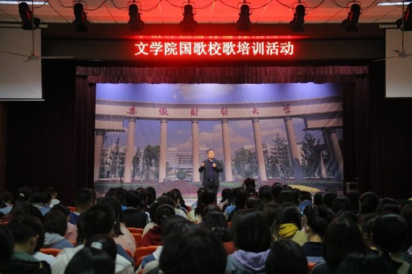 为进一步推动“四史”学习教育工作,持续深化爱国主义教育,近日,文学院在西校区团委礼堂举办“唱国歌、学校歌,温历史,聚能量”爱国主义主题教育活动,活动特邀蚌埠医学院叶培结老师为学生现场指导,院党委书记姚金琢,党委副书记刘晓光,团委书记李俊忆,2020级辅导员出席活动,2020级全体新生及各年级学生代表参与了本次活动。活动由刘晓光主持。