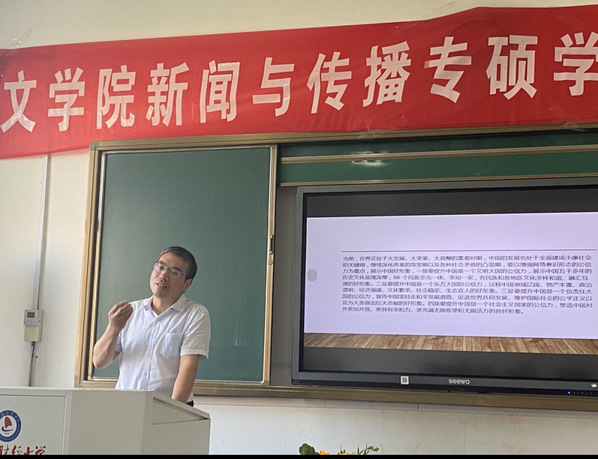 6月5日下午,安徽省社会科学院新闻与传播研究所方金友研究员,在博文楼402教室为文学院新闻与传播专硕作了名为“新时代网络意识形态的生成及建构”的学术报告。