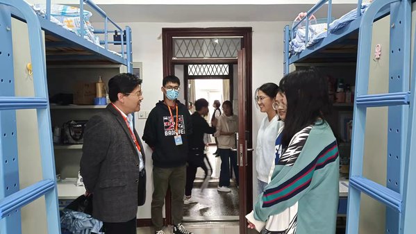 为加强学生管理工作,及时了解学生情况和思想动态,为同学们营造一个安全、健康和舒适的学习生活环境,10月14日下午,学院党委书记王龙建、副书记虞鲲和辅导员深入学生宿舍,走访看望2021级新生。