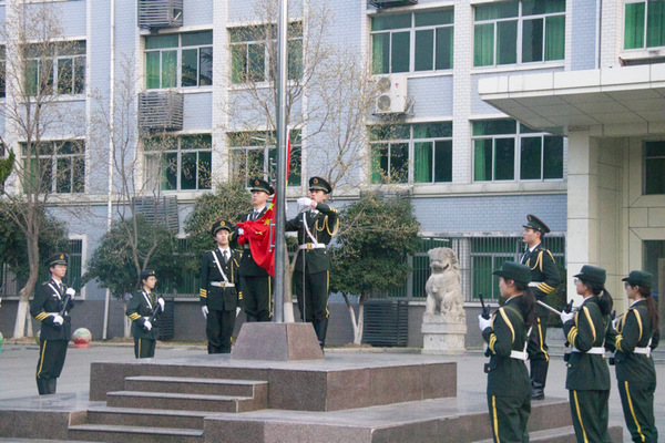 升旗仪式开始前十五分钟,所有参与升旗仪式的学生以班级为单位集合完毕,现场秩序井然,气氛庄重肃穆仪式开始,国旗护卫队队员迈着整齐的步伐,英姿飒爽,步履铿锵,迎着朝阳升起五星红旗随着国旗的冉冉上升,全体学生唱国歌,向国旗行注目礼,以昂扬的精神面貌向祖国表达真挚的热爱之情升旗仪式结束后,各班同学有序离场。