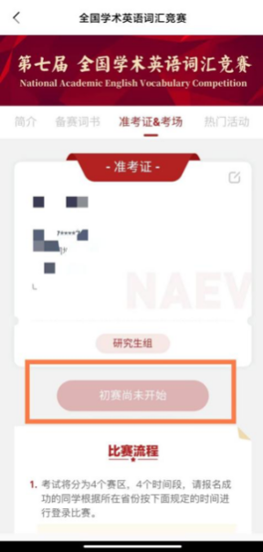 决赛时间:5月21日 下午19:00~20:00,仅限一场,决出“全国特等奖”,并授予“学术英语词汇之星”称号。
