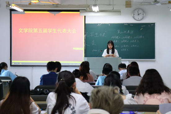 6月1日下午,文学院在通慧楼402教室举行第五届学生代表大会。学院团委书记范璇、团委副书记李伟及36名学生代表共同参加了本次会议。会议由学生会主席曹近泽主持。