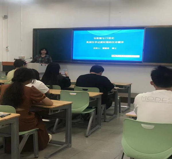 5月31日晚, 文学院中文系副教授潘慧琼在通慧楼106教室作了题为“韦斯顿与十九世纪英国汉学过渡时期的汉诗翻译”的学术讲座。讲座由杨化坤老师主持,文学院部分师生参加了讲座。