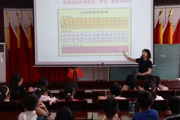 实践过程中,文学院中文系副教授潘慧琼和教师王静静分别作了《普通话的发音难点与训练方法》和《普通话的内涵与推普助力乡村振兴的实现路径》的专题讲座,为村民们讲授普通话知识。团队成员还策划开展了普通话大挑战、传话接龙和猜字谜等有趣的文字游戏,寓教于乐的方式更利于推广普通话,村民们积极参与,反响热烈。