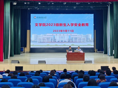 为增强学生的安全防范意识和避险能力,创造和谐安全的校园环境,9月11日晚,文学院在龙湖东校区艺术楼报告厅召开2023级新生入学安全教育大会。本次会议邀请了龙湖派出所所长陈兴武主讲,学院党委书记王龙建、党委副书记虞鲲、龙湖派出所副所长王之高、新生辅导员以及2023级全体新生参加会议。会议由王龙建主持。