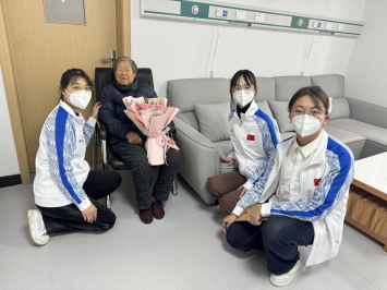 随后,队员们访问了“七一勋章”获得者渡江英雄马毛姐。满怀着敬意与激动的心情,团队成员推开了康复中心的大门,看见了坐在轮椅上的马毛姐奶奶。亲切的面庞、和蔼的声音,即使已经年岁稍长,马毛姐在回忆起那场战役时仍然目光如炬,信念坚定。1949年4月,渡江战役打响时,年仅14岁的马毛姐,毅然决然地选择和哥哥一起参加“渡江突击队”,用木船载着一批批解放军战士强渡长江,为保障解放军部队过江作出了突出贡献。马毛姐语重心长地叮嘱着同学们要始终永葆初心,为了祖国发展、为了人民幸福生活好好学习,不断奋斗。“为人民服务,跟着党走”马毛姐满怀期盼地看着同学们说道。党的精神就这样一代代进行着传递,革命的火种就这样一代代生生不息。