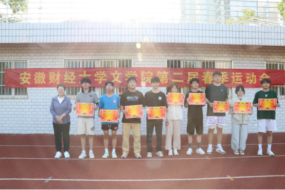 本次运动会赛程为期1天,共设100米、200米、400米、800米、1500米、铅球、铁饼、标枪、跳远、三级跳等十个正式比赛项目和一个4×100米男女混合接力赛项目,共253位学生报名参赛。赛场上,运动员们青春的力量在田径场上迸发,矫健的身影展现出文学院学子积极向上的精神面貌。他们昂扬进取的斗志,顽强拼搏的精神感染了现场观众,赢得了阵阵喝彩。文学院学生运动员践行“友谊第一、比赛第二”的体育精神,赛出水平,赛出风格。经过一天的激烈角逐,运动健儿们以优异的成绩为本次运动会画上圆满句号。同时,学院对获得体育道德风尚奖的10个班级进行表彰。