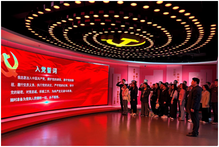 在讲解员的引导和解说下,大家依次参观了 “党性立心 纪法立行”、“廉韵淮畔 润泽珠城”、“前车之鉴 警钟长鸣”、“踔厉奋发 永葆清廉”四大板块内容,展厅通过图片、文字、影像等多种表现形式,以翔实鲜活的案例、触目惊心的画面和令人警醒的忏悔书,直观生动地展示近年来党员干部违纪违法典型案例,使大家在视觉、听觉上接受了一堂全面生动的反腐倡廉警示教育课。最后,学院党委书记王龙建带领参加活动的党员重温入党誓词,重忆入党初心。