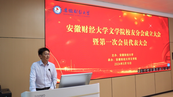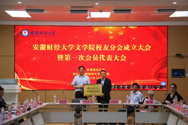 丁忠明为文学院校友分会授牌。张亚新代表学校向文学院校友分会的成立表示热烈祝贺,并向在各条战线建功立业、为学校发展作出贡献的广大校友表示感谢。他指出,在一代代安财人的共同努力下,学校在学科专业建设、师资队伍建设、人才培养、科学研究、社会服务、文化传承创新、国际交流合作等方面取得了巨大成就。希望文学院校友分会充分发挥桥梁纽带作用,广大校友继承和发扬安财精神,共同为建设具有鲜明财经特色的多科性高水平大学贡献力量,为社会的发展进步作出更大的贡献。