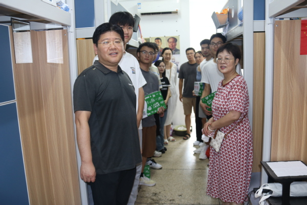 为深入了解暑期留校学生的思想、学习和生活状况,切实做好留校学生的宿舍安全和教育管理工作,8月14日下午,学院党委书记王龙建、党委副书记虞鲲一行深入学生宿舍走访慰问暑期留校备考、实习的学生。