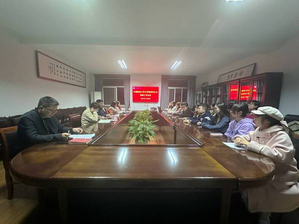 11月8日,文学院在二楼会议室召开研究生会换届工作会议。学院党委书记王龙建,党委副书记虞鲲,团委书记范璇、研究生教学管理人员胡伟芳、专职辅导员吴闲闲,第二届和新一届研究生会学生干部参加会议。会议由范璇主持。
