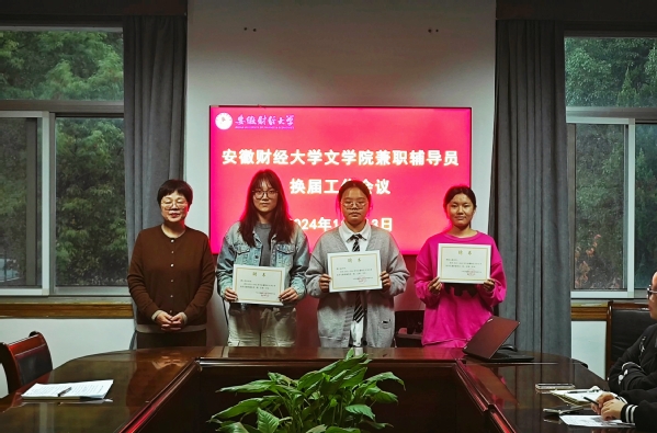 11月13日下午,文学院在二楼会议室召开2024年学生兼职辅导员换届工作会议。学院党委书记王龙建,党委副书记虞鲲,团委书记、教师辅导员、朋辈辅导员,第二届学生兼职辅导员以及新任学生兼职辅导员参加会议。