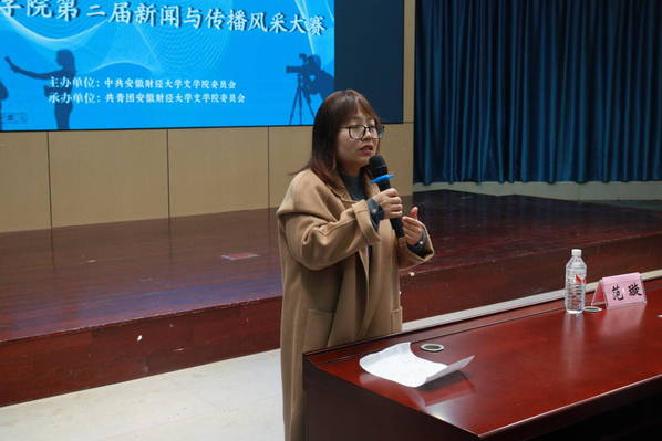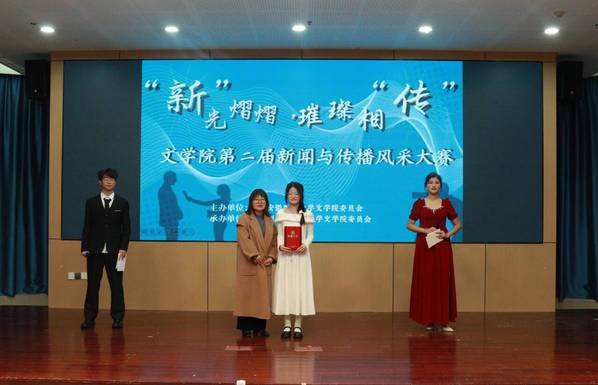 为提升学生的新闻素养,展现新闻传播专业学生的风采,11月25日晚上,文学院在龙湖东校区图书馆一楼报告厅举办第二届新闻与传播风采大赛。新闻传播系张香萍、戴定华老师,团委书记范璇担任比赛评委,2023级和2024级学生到场观看比赛。